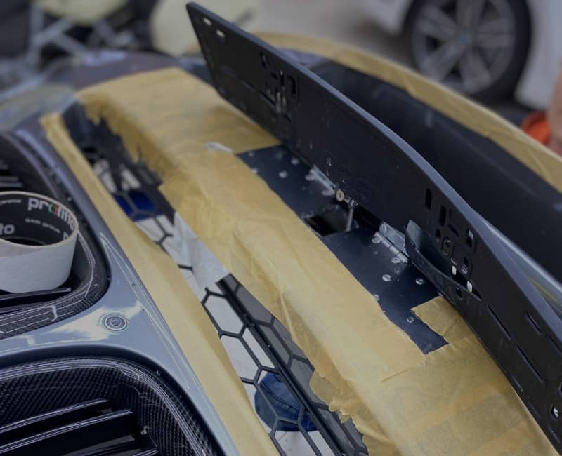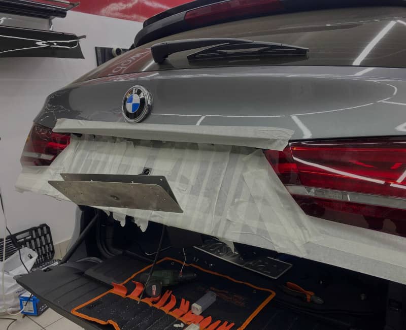 С помощью пульта дистанционного управления или кнопки в салоне откидная рамка с номером мгновенно откидывается на 90 градусов вниз.